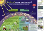 Grande infographie pour expliquer le changement climatique, ses causes, ses conséquences. Présentation de quelques solutions.